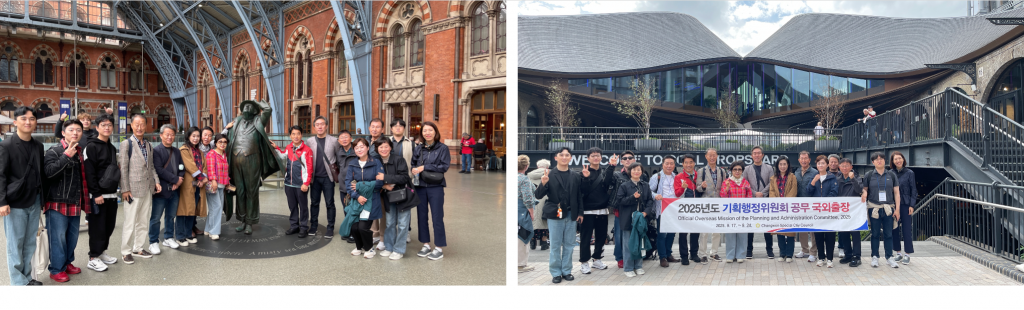 2025년 9월 20일, 창원시의회 기획행정위원회 소속 의원 12명이 런던을 방문했습니다. 이들은 도시재생의 대표적 성공 사례로 평가받는 ‘킹스크로스(King’s Cross) 일대’를 답사하며, 김정후 박사의 현장 강연을 들었습니다. 김정후 박사는 20년 넘게 진행된 킹스크로스 재생사업의 핵심 구조와 철학을 쉽게 이해할 수 있도록 시간의 흐름에 따라 주요 공간을 순차적으로 설명했습니다. 구체적인 답사 동선은 세인트 판크라스역, 킹스크로스역, 판크라스 스퀘어(구글), 킹스 블루바드, 그라나리 스퀘어, 센트럴 세인트 마틴스, 콜 드롭스 야드, 가스홀더입니다. 김정후 박사는 특히 도시 비전의 설정과 이를 실현하기 위한 단계별 방법론에 초첨을 맞추어 설명했고, 높은 수준의 공공공간이 킹스크로스 재생사업의 완성도를 높였다는 점을 강조했습니다.